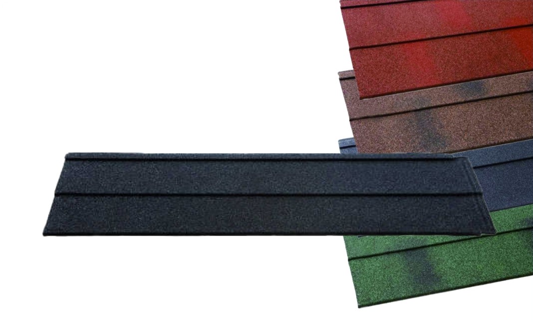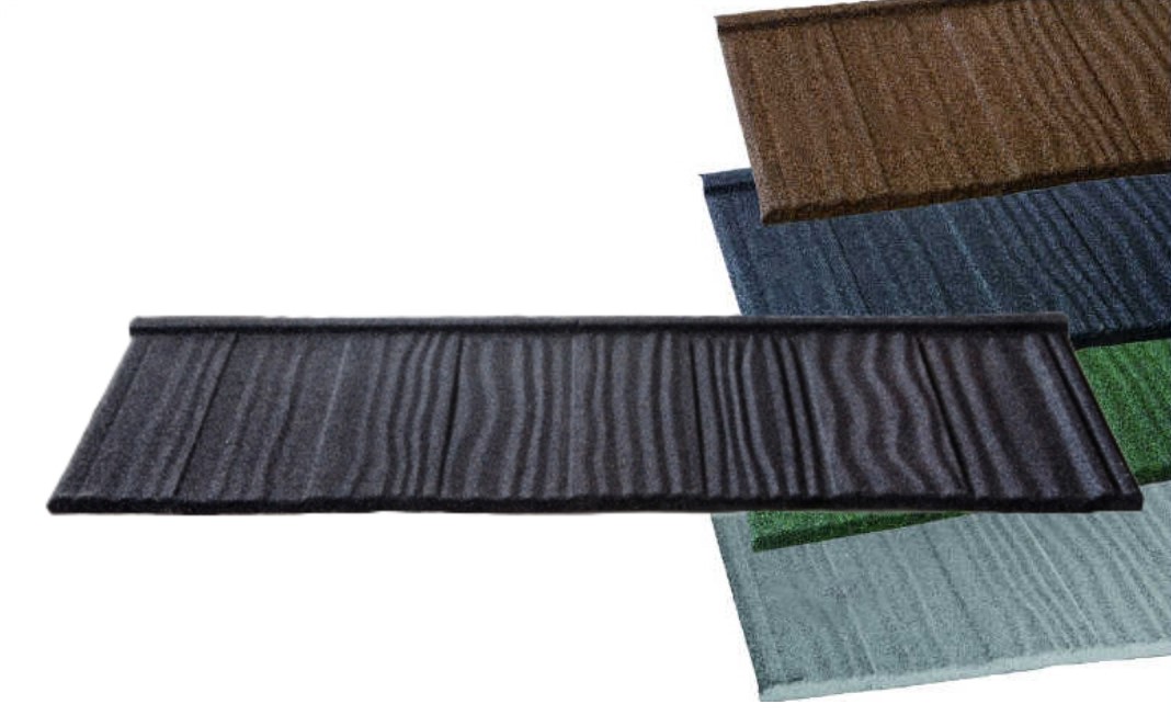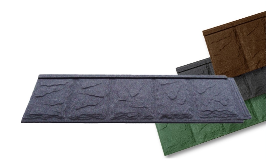 錆に強いジンカリウム鋼板の基材の上に、ストーンチップと呼ばれる自然の石粒に日本の陶器瓦と同じ釉薬で色付けした後に、700度以上の高温酸化焼成をかけた対候性に優れた素材で仕上げた、非常に耐久性の高い素材です。